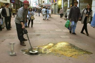 Neki njegovi uraci već godinama kruže onim cikličnim e-mailovima, koje vrlo često nazivamo spamovima, a koji u ovom slučaju izazivaju uzdahe oduševljenja. Njegovi deformirani crteži gledani iz pravog ugla postaju potpuno trodimenzionalni, a cjelokupni dojam viđen na fotografijama pojačava i samo autorovo stavljanje u crtež. Uostalom, pogledajte i sami …
