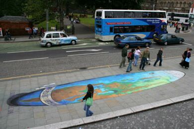 Na vrhu Globusa stoji maleni Julian Beever, a to je zato što je ...
