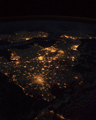 Velika Britanija - najosvjetljeniji dio je, naravno, London, a potom na zapadnoj obali gotovo spojeni Liverpool i Manchester, dok je na istočnoj obali najsvjetliji Newcastle, a iznad njega svjetle Glasgow i Edinburgh