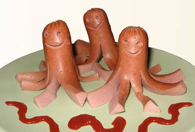 Prikladno za svačiji džep, ne traži spretnost, umješnost i razmišljanje, ne može „jelo ne uspjeti“, učas gotovo, i dijete zna pripremiti, o tati da i ne govorimo. Specijaliteti za dobro jutro, kad poli voli, jedan griz za tatu, pa jedan za mamu, ne moraš žvakati, samo progutaj. Gutaj, dijete, gutaj, glavno da se najedeš, svašta unutra ima. Od vode, nekvalitetnog ulja, umjetnih konzervansa, stabilizatora, boja, vitamina i aroma, do prevelike količine soli. Pa fino mljevene iznutrice, koža, nokti, papci, crijeva, žile, salo, masnoće, kosti, ligamenti i sve drugo, manje kvalitetno meso, kome su dodani razni začini za nepce. Upakira se u privlačnu ambalažu, dobro plati još privlačnijoj pjevačkoj zvijezdi da polusnena trlja i mrlja po margarinu i hrenovki i – eto biznisa i dobre zarade.