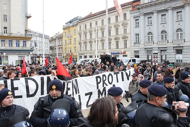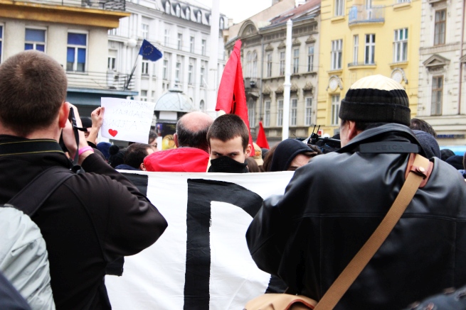 Našao se tu i jedan ozbiljniji provokator, koji je došao do samog transparenta "Ujedinjeni protiv antifašizma" te tamo započeo komunikaciju psovkama i neartikuliranim zvucima, ali ljudi su ga naprosto ignorirali. Na koncu ga je odvela policija.