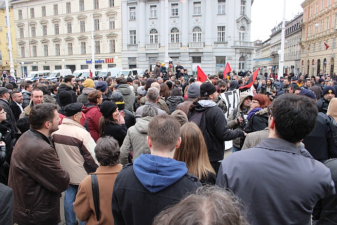 Oko dvije stotine zagrebačkih antifašista izašlo je jučer na Trg bana Jelačića, kako bi digli svoj glas protiv govora mržnje i nametanja ideja ekstremnog nacionalizma. Povod ovom skupu bila je navada proustaške stranke A-HSP da će na Trgu bana Jelačića postrojiti stranačku vojsku odjevenu u crno, za što im je policija najprije dala dozvolu, da bi je nakon negativne reakcije javnosti povukla.