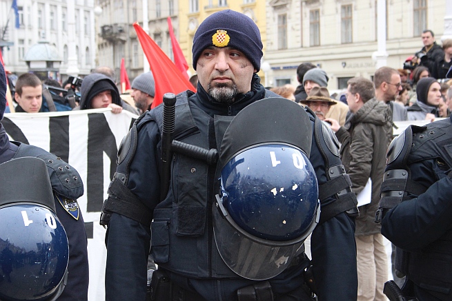 Vod interventne policije postrojen pred antifašistima uglavnom se dosađivao.