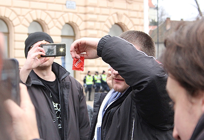 Na koncu je iz jednog od unutrašnjih džepova pretražen mladić izvadio i - kondom. Ljubav za sve! Policajci su ostali ozbiljni.