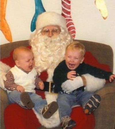 Horor koji su proživjeli i preživjeli junaci naše božićne galerije mnogi među nama imali su priliku iskusiti na vlastitoj koži. Svi su obučeni u najljepšu odjeću, pod borom se čekaju pokloni, a onda vas mama uzima u ruke i stavlja u krilo u crveno obučenoj spodobi, kojoj od velike bijele bradurine ne vidiš lice. Spodoba viče - ho, ho, ho - a vi ste već na rubu plača. Sekundicu kasnije zaorite se cijelom prostorijom koliko god vas grlo nosi - mamaaaaaaaaaaaaaaaaaaaaaaaaaa, aaaaaaaaaaaaaaaaaa..., buaaaaaaaaaaaaaaa …