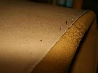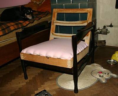 „Onda se stavljaju novi materijali, i to obrnutim redom“, savjetuje naš čitatelj koji je i sam uputstva za izradu ovog komada namještaja našao na YouTubeu koji je prepun ovakvih stvari. Postavio je elastične trake i pet centimetara debelu spužvu, za koju je čak specificirao i gustoću (30kg/m3).