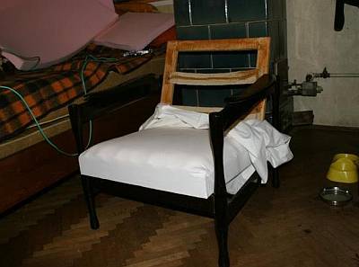 No, nije sve ovo iskorišteno za samo jednu fotelju, jer pored ove s tim materijalom misli restaurirati još tri fotelje. Za samo jednu potrošio je oko 250 klamerica, 50 x 100 centimetara spužve, polovicu plahte i otprilike deset metara elastične trake. Na koncu ćemo zaključiti da čak i da ovakvi potezi financijski ne nose nikakvu isplativost, zadovoljstvo koje osjetiš kada sam nešto ovakvo napraviš, mora da puno vrijedi …