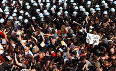 Policija hrabro brani „najbolje društvo na svijetu“ od nesnosne civilne napasti (FOTO: esvin)