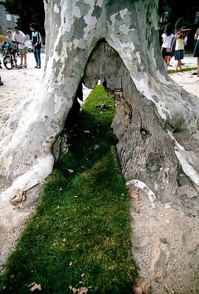 Vrtlarska gerila, tako bi se mogla nazvati ova intervencija u prostoru srednjovjekovnog gradića Jaujac, u južnoj Francuskoj. Kamene ulice pitoresknog gradića s jedva tisuću duša osvanule su sa zelenim tepihom na sebi, a fotografije ove akcije izazivaju fasciniranost kod promatrača. Upravo stoga podsjećamo vas na ovu intervenciju Gaëlle Villedary, u koju je utrošeno 168 rola, odnosno 420 metara travnjaka, s idejom da se srednjovjekovni gradić poveže s dolinom koja ga okružuje, odnosno da se s komadićem prirode poveže čovjeka i majku mu prirodu