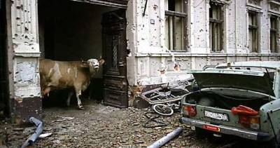 Iza teške zavjese od magle i rijetkih kapi kiše nazire se silueta Vukovara. Dvije kontrole policije i vojske na ulazu u grad kojeg nema. Duga ravna cesta i dugi, dugi niz porušenih obiteljskih kuća. Nijedna kuća nije cijela. Hrpe cigala i drvenih greda uz rub ceste. U jednom dvorištu tri mrtve svinje, četvrta umire od gladi, vide joj se rebra.