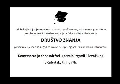 Ako ste, kao član akademske zajednice i zaposlenik Filozofskog fakulteta, spremni na borbu za budućnost hrvatske znanosti i visokog obrazovanja, molimo da svojim potpisom potvrdite da podržavate organiziranje štrajka akademskih radnika protiv zakonskih prijedloga, i da ćete u štrajku sudjelovati. Kako biste podržali akciju svojim potpisom, molimo vas da na adresu akad.solidarnost@gmail.com pošaljete: svoje ime/prezime, titulu (mr/dr), znanstveno-nastavno zvanje i odsjek.